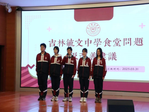 (文/曲冠勋 图/张曦月)3月31日,吉林毓文中学举办了第四届模拟政协提案展示暨高一年级模拟政协政治学科活动。活动由船营区政协文教卫体委牵头,学校高一政治学科组和模拟政协社团联合主办。六支高一年级代表队化身“青春委员”,以“扎实调研为笔、以民生关切”为墨,围绕社会热点提出创新提案。从校园食材安全管理的细致规范,到东北充电桩普及的科技前瞻;从流动摊点治理的温情执法,到单身女性出行安全的人文关怀,再到青少年心理健康体系的科学构建,每一份提案都凝聚着同学们对社会问题的敏锐观察与务实思考。